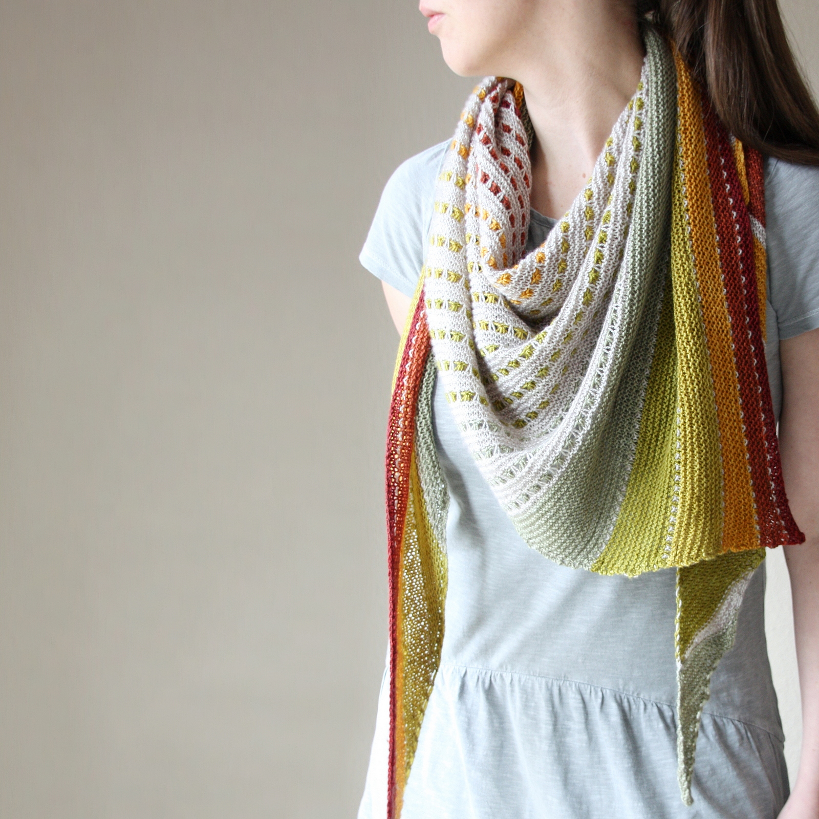 Ten little pops of color, two calm base tones – and plenty of knitting joy in between. Ten Dots Later is a shawl full of lightness, color, and cheer – modern, playful, and simply made to fall in lo...